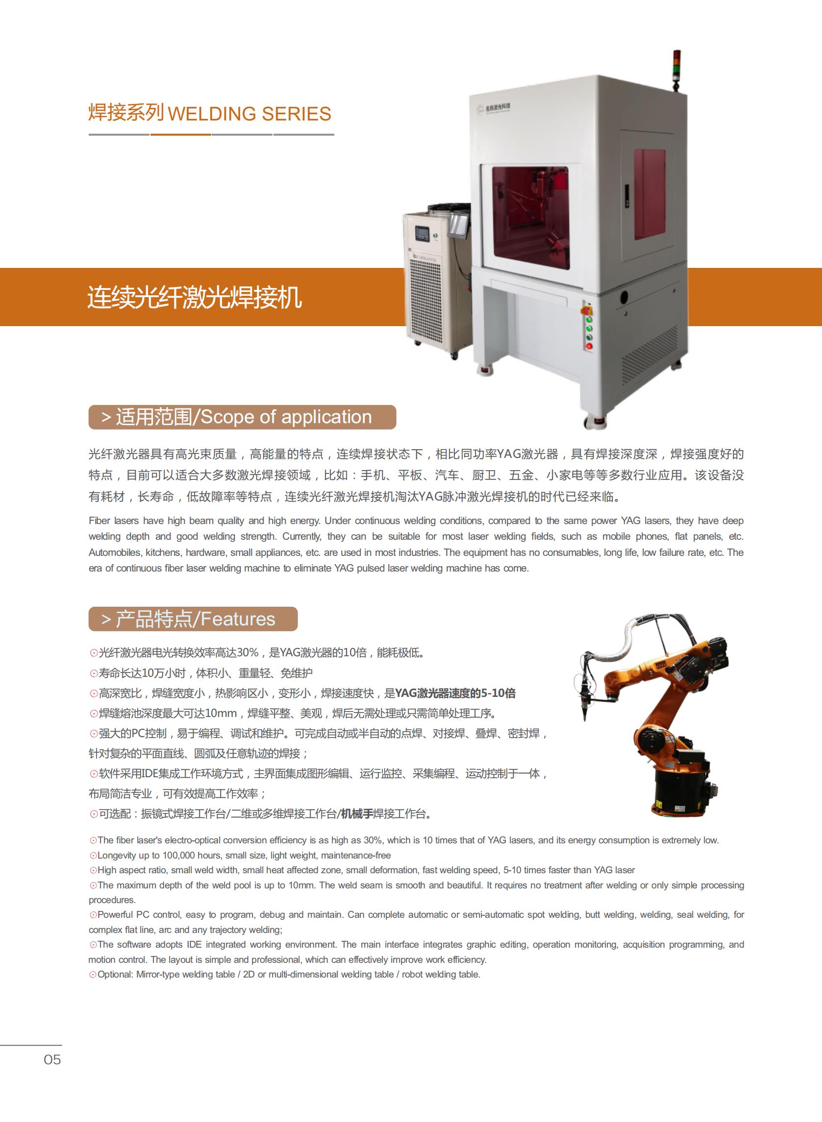 光纖激光器具有高光束質量,高能量的特點,連續焊接狀態下,相比同功率YAG激光器,具有焊接深度深,焊接強度好的特點,目前可以適合大多數激光焊接領域,比如:手機、平板、汽車、廚衛、五金、小家電等等多數行業應用。該設備沒有耗材,長壽命,低故障率等特點,連續光纖激光焊接機淘汰YAG脈沖激光焊接機的時代已經來臨